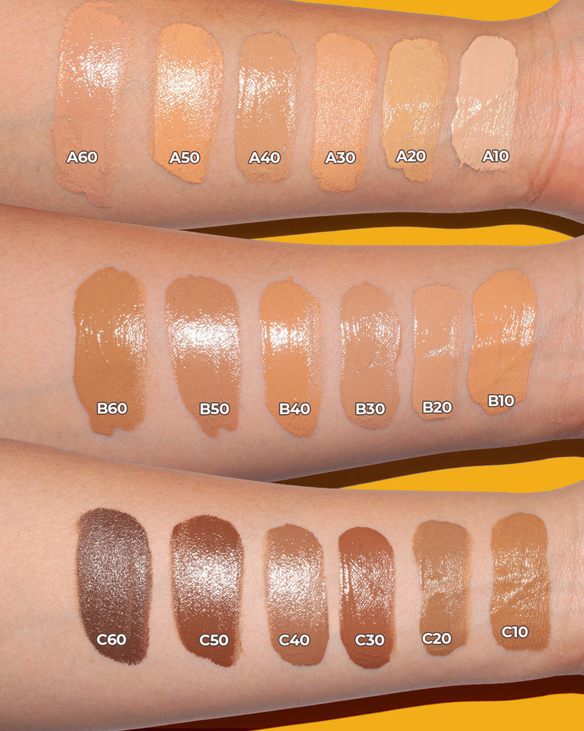 Composição: Aqua, Ethylhexyl Palmitate, Glycerin, Cyclopentasiloxane, Propylene Glycol, Dimethicone, Isododecane, Butylene Glycol, Silica, Tridecyl Trimellitate, Mineral Oil, Sorbitan Sesquioleate, Steareth-21, Chlorphenesin, Sodium Hyaluronate, Bht, Tocopherol, Parfum, Iodopropynyl Butylcarbamate, Cinnamal, Benzyl Cinnamate. Pode conter: Cl 77891, Cl 77492, Cl 77491, Cl 77499.