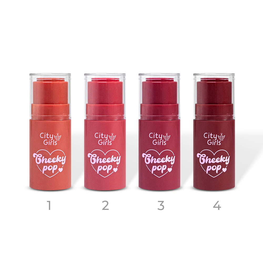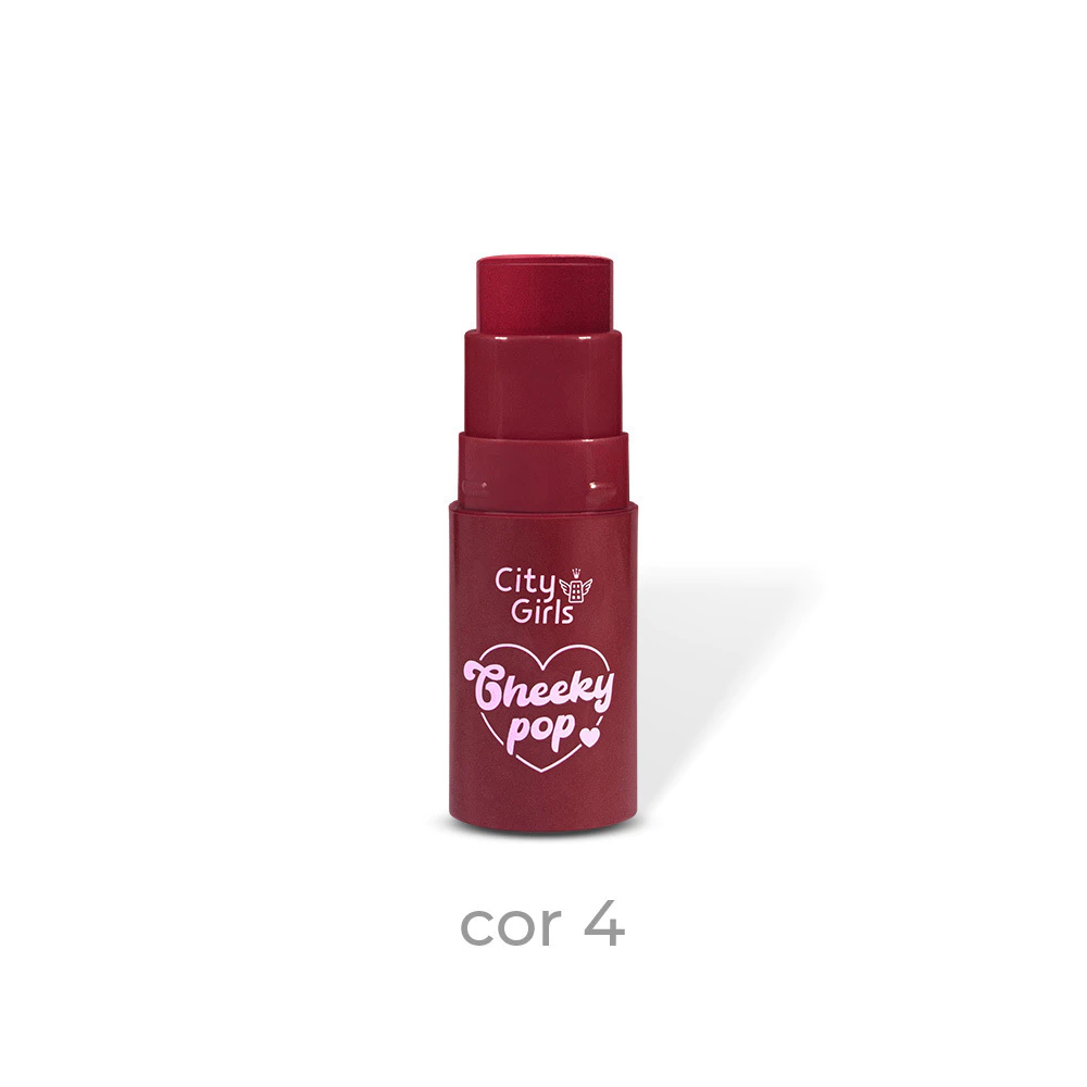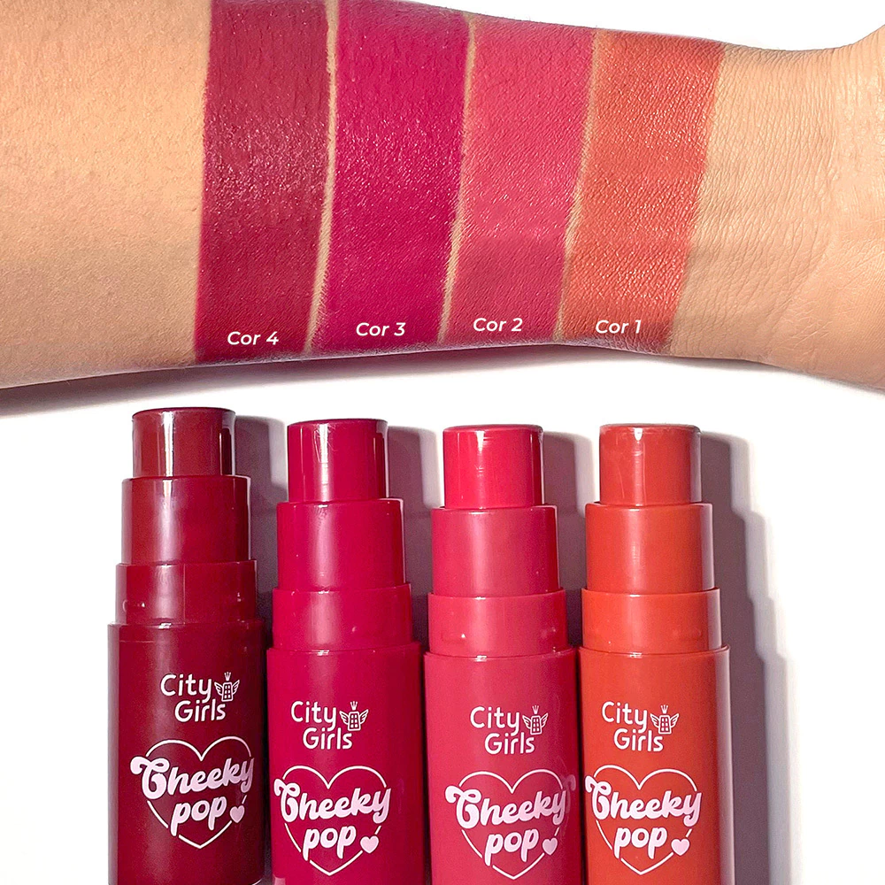 Que os produtos em stick estão super em alta, todos já sabem... Que a City Girls não fica de fora, vocês já sabem também! O que ainda não sabem é que o Cheeky Pop é o blush em stick que faltava na sua coleção e veio para ocupar o posto de ser seu queridinho! Ele veio em cores lindas para todos os gostos e tonalidades de pele, possui uma embalagem compacta e super resistente para encaixar no seu dia a dia, tem uma fórmula maravilhosa que desliza na pele como manteiga e se esfuma e funde na pele de forma natural, permite a construção de camadas, tem muita resistência e durabilidade, além de possuir um cheirinho suave e frutado delicioso! Além de fazer a aplicação nas maçãs do rosto, o stick permite que você use também nos lábios como balm, fazendo uma aplicação suave com leves batidinhas ou até batom, deslizando o stick direto na boca para uma alta pigmentação! São mil possibilidades com o Cheeky Pop que veio para descomplicar sua vida e deixar sua rotina mais leve! Disponível em 4 cores.